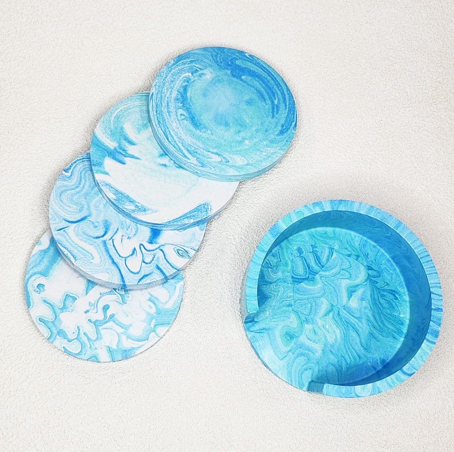 【coaster110】4枚セット 直径8.5cm コースター 収納ケース付き マーブル コルク 日用品雑貨 おしゃれ雑貨 おしゃれコースター プレゼント ギフト クリスマスプレゼント 贈り物 結婚祝い 出産祝い SDGs オリジナル 焼かない製法 場所を取らない 収納上手